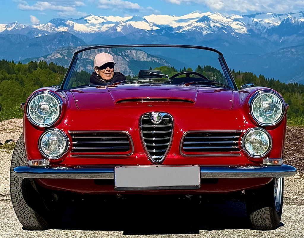 Über den erfolgreichen Giuliettas mit 1300 Kubik schwebte in den 50er Jahren nur ein einziges Fahrzeug als Reminiszenz an die exklusiven Vorkriegsjahre, der 1900er als Limousine und Coupé, gezeichnet und überwiegend gebaut bei der namhaften Karosserieschmiede Touring. Dieses kleine Segment für die obere Mittelschicht und die Oberschicht wollte man nicht vernachlässigen, auch aus Image-Gründen. Als der 1900er schließlich in die Jahre kam, gab man bei Touring einen Nachfolger in Auftrag, der mit einer auf 2000 Kubik aufgebohrten Version des 1900er Motors bestückt werden sollte. Carlo Felice Bianco Anderloni, der Chef von Touring, zeichnete also im Jahr 1956 eine völlig neue, für damalige Zeiten sehr moderne, lang gestreckte Karosse, die den Alfa-Chef Orazio Satta auf Anhieb begeisterte. Touring hatte Prototypen in der Superleggera Bauweise hergestellt. Bei dieser Bauart, die Touring schon in den 20er Jahren entwickelt hatte, wurde eine leichte Aluminiumkarosserie über einen leichten Gitterrohrrahmen gezogen. Der große Vorteil: Superleggera Karossen waren im Schnitt etwa 200 Kilo leichter als ein stählernes Pendant.
