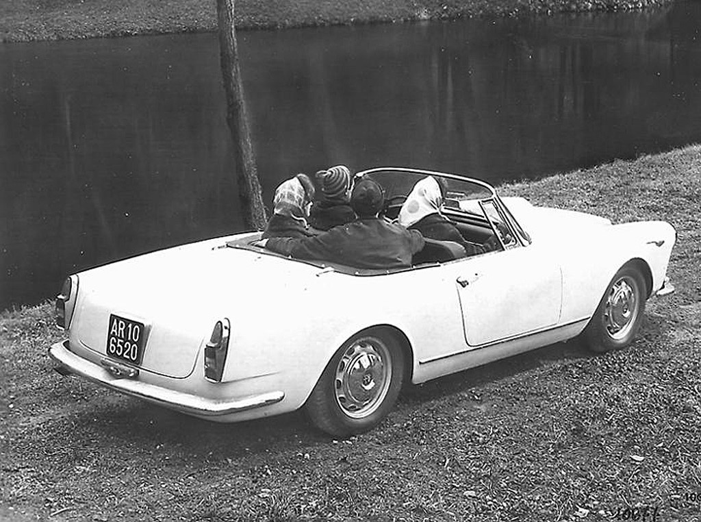 Familientauglichkeit hatte in der Werbung jedoch keine hohe Priorität. Alfa wollte den 2600 Spider lieber so sehen - mit attraktiver Dame in nobler Umgebung: