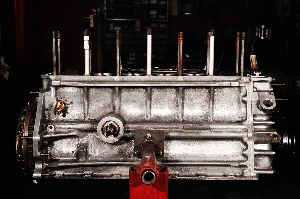 Der erste Vorteil gegenüber den Arbeiten an der Karosserie: Man findet nahezu alle Ersatzteile, die üblicherweise verschlissen sind, als Nachbau: Kolben, Kolbenringe, Laufbuchsen, Pleuellager, Kurbelwellenlager, Wasserpumpe, Dichtsätze, und so weiter. Allenfalls die komplette Ölpumpe ist schwer aufzutreiben. Auch Vergaser (Weber), Zündung (1-2-3 elektronisch), Lichtmaschine und Anlasser gibt es als Neuteile. Bei einer Motor-Restaurierung wird man also – mal abgesehen von den hohen Kosten – nicht vor unüberwindbaren Hürden stehen.